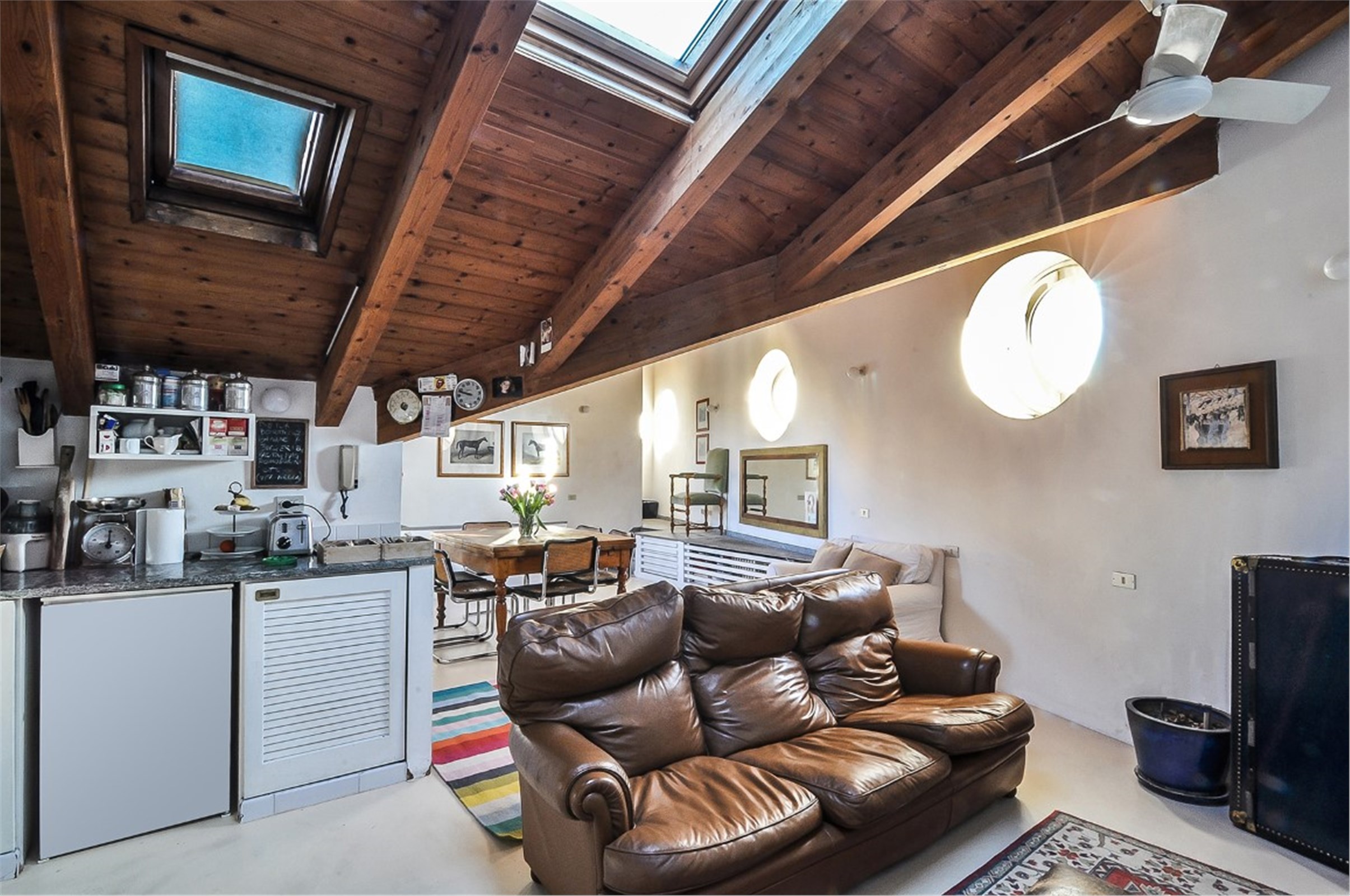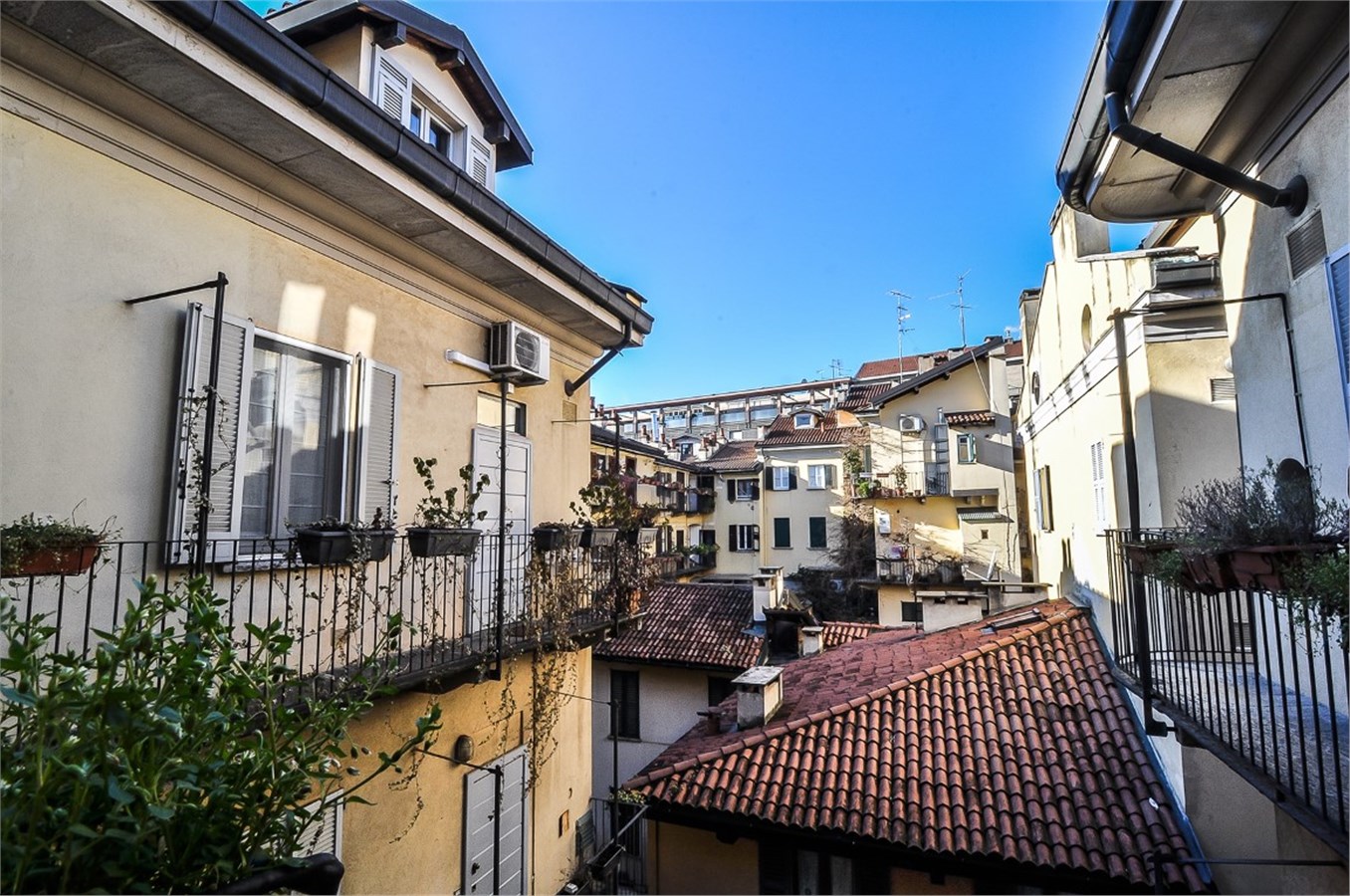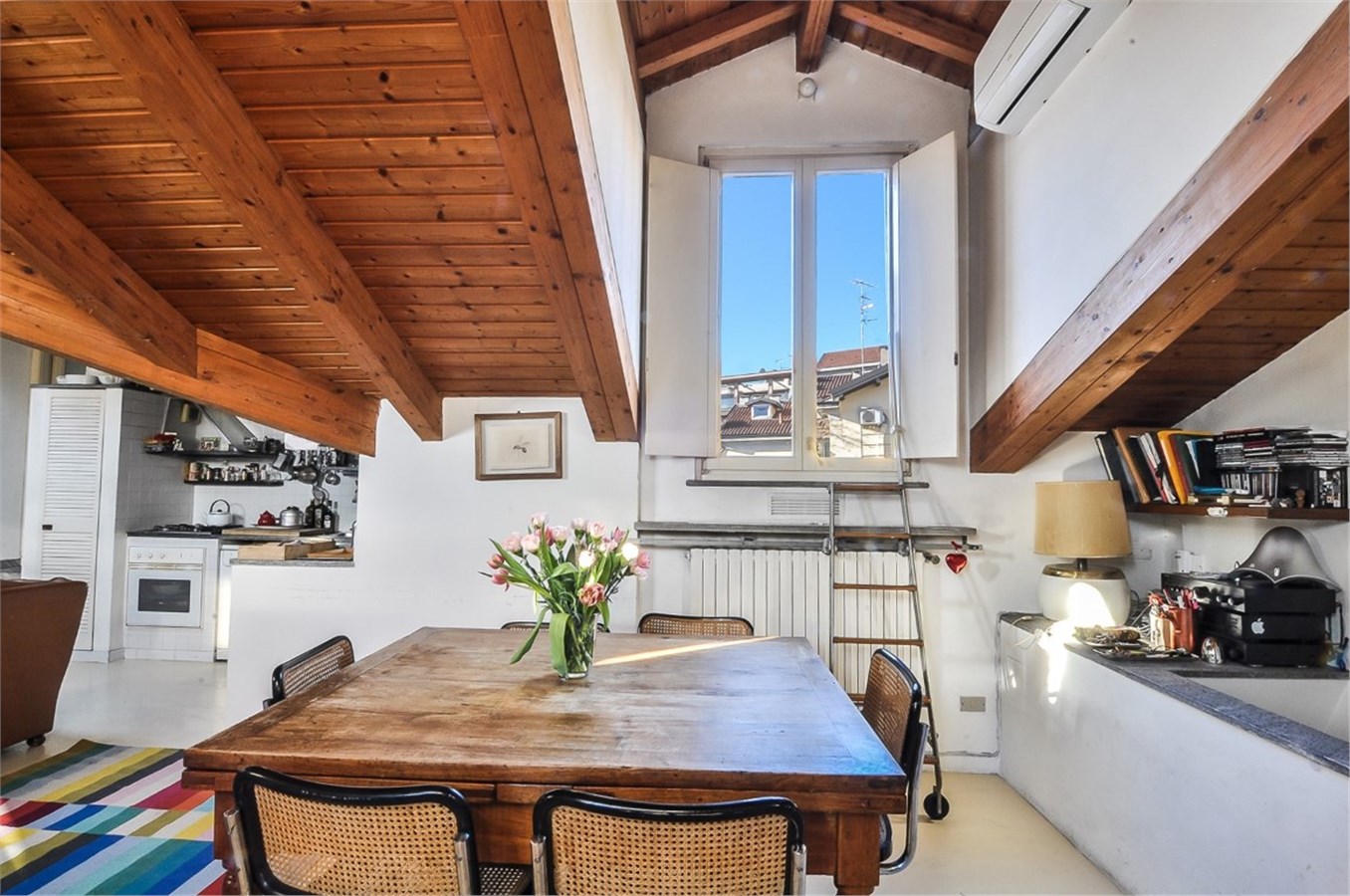 Silenzio e luce sono le caratteristiche di maggior impatto quando si entra in questa romantica abitazione che gode di deliziosi affacci sui tetti e sui cortili milanesi.