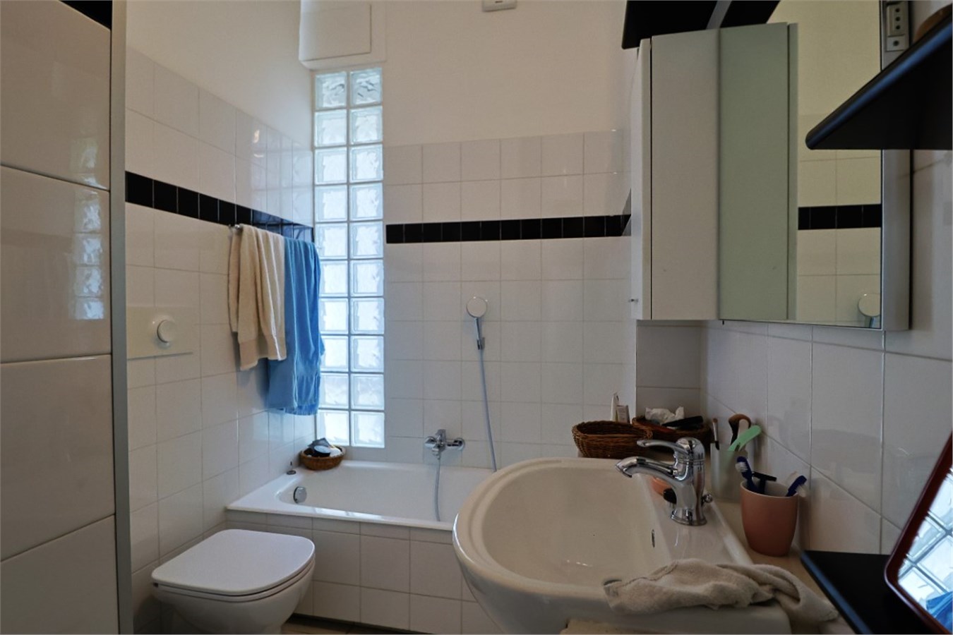 La superficie abitativa di 118 mq si compone di un ingresso, un accogliente e luminosissimo soggiorno doppio, che, tramite l’ampia balconata, gode di un gradevole affaccio sui giardinetti sottostanti. Adiacente al soggiorno è presente una cucina semi-abitabile.  Nella zona notte troviamo 2 ampie camere da letto, 2 bagni e un’altra lunghissima balconata. L’immobile si presenta in buonissimo stato di conservazione.
