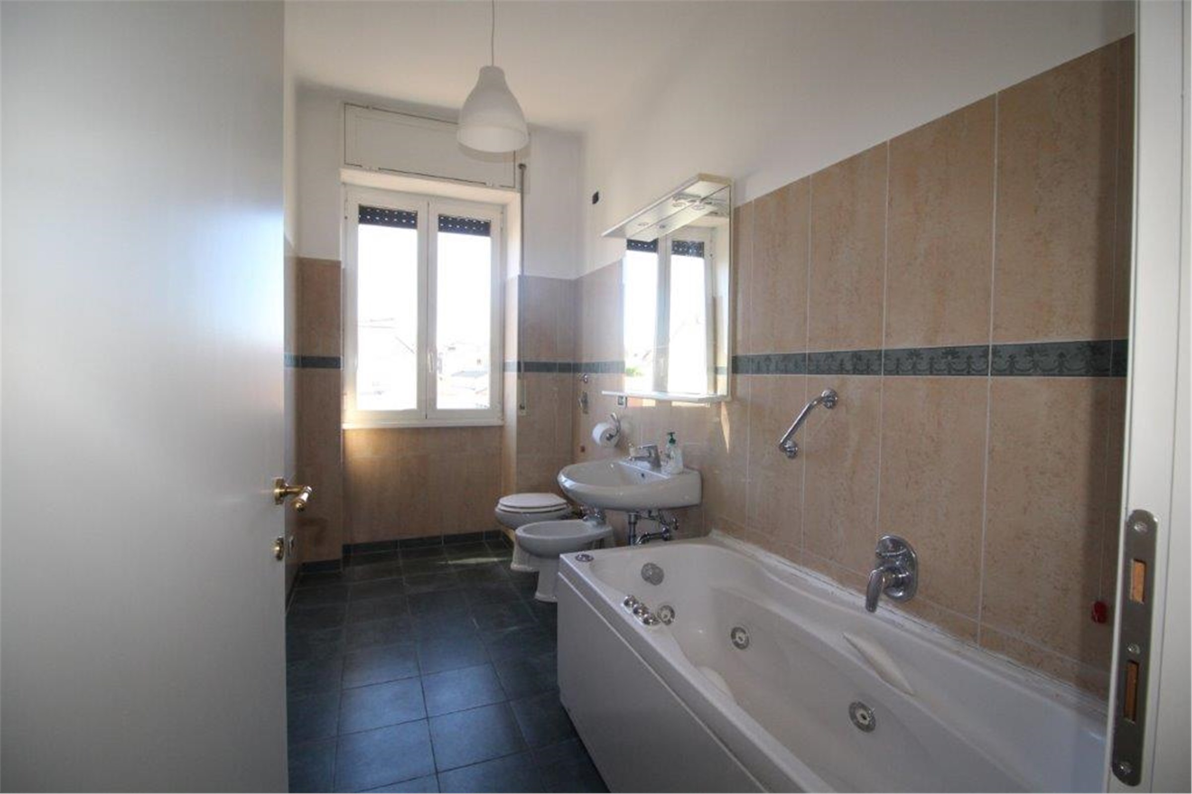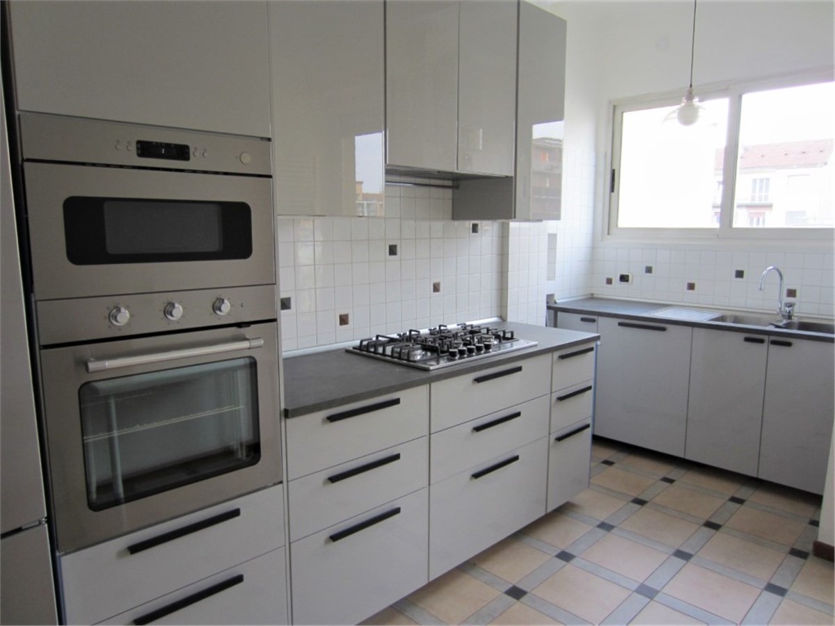 The apartment on the 5th floor, is well divided, bright and freshly painted in a ‘50s building with porter service. The 135sqmt floor space comprises a large living-room with a balcony, 3 bedrooms, a small storage room, 2 bathrooms and a lovely “eat-in” kitchen with a small balcony. Furnished kitchen. Air conditioning.
