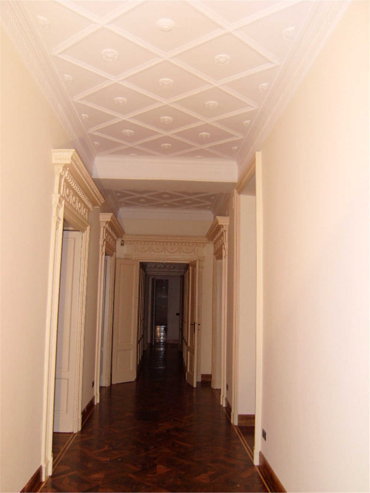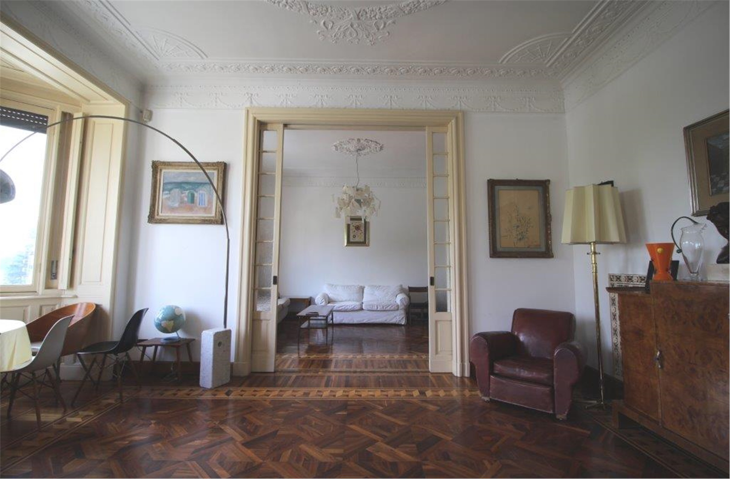 Questo raffinato appartamento ha preservato intatto lo charme caratteristico delle case edificate all’inizio del 1900: parquet intarsiati, soffitti alti abbelliti da preziosi stucchi, eleganti infissi interni con le pregiate alzate e caloriferi in ghisa.