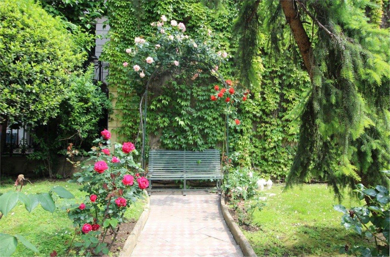 La superficie abitativa è composta da un ampio ingresso, un grande salone di rappresentanza con camino e bow-window, bellissima sala da pranzo, 4 camere da letto di cui una con bow-window, 3 bagni e un grande cucina che affaccia il giardino interno.