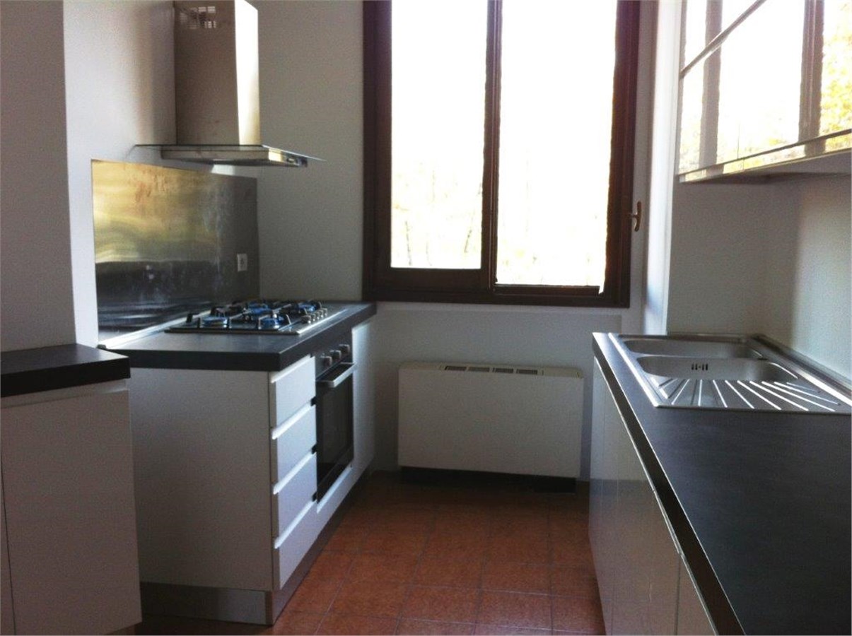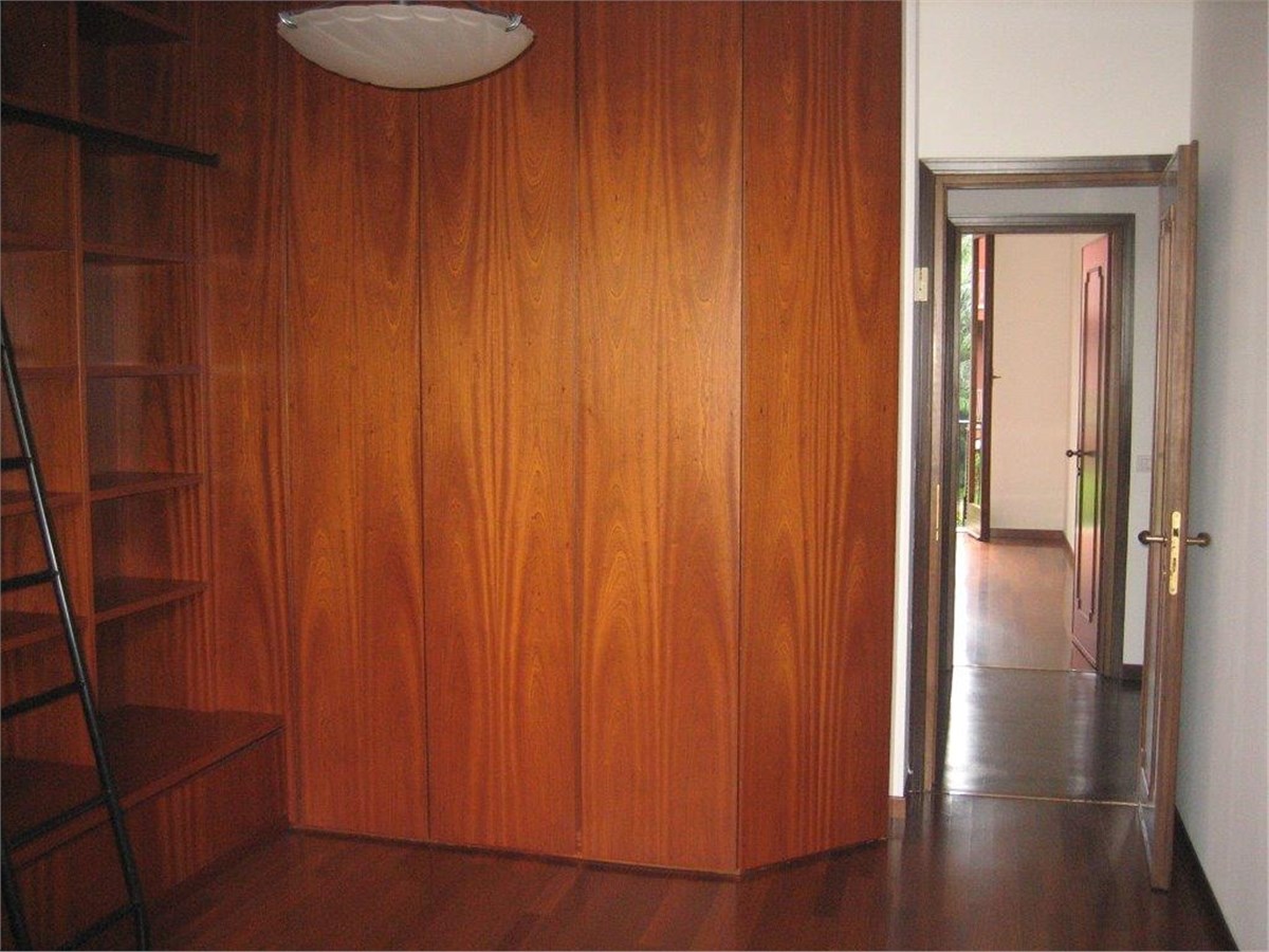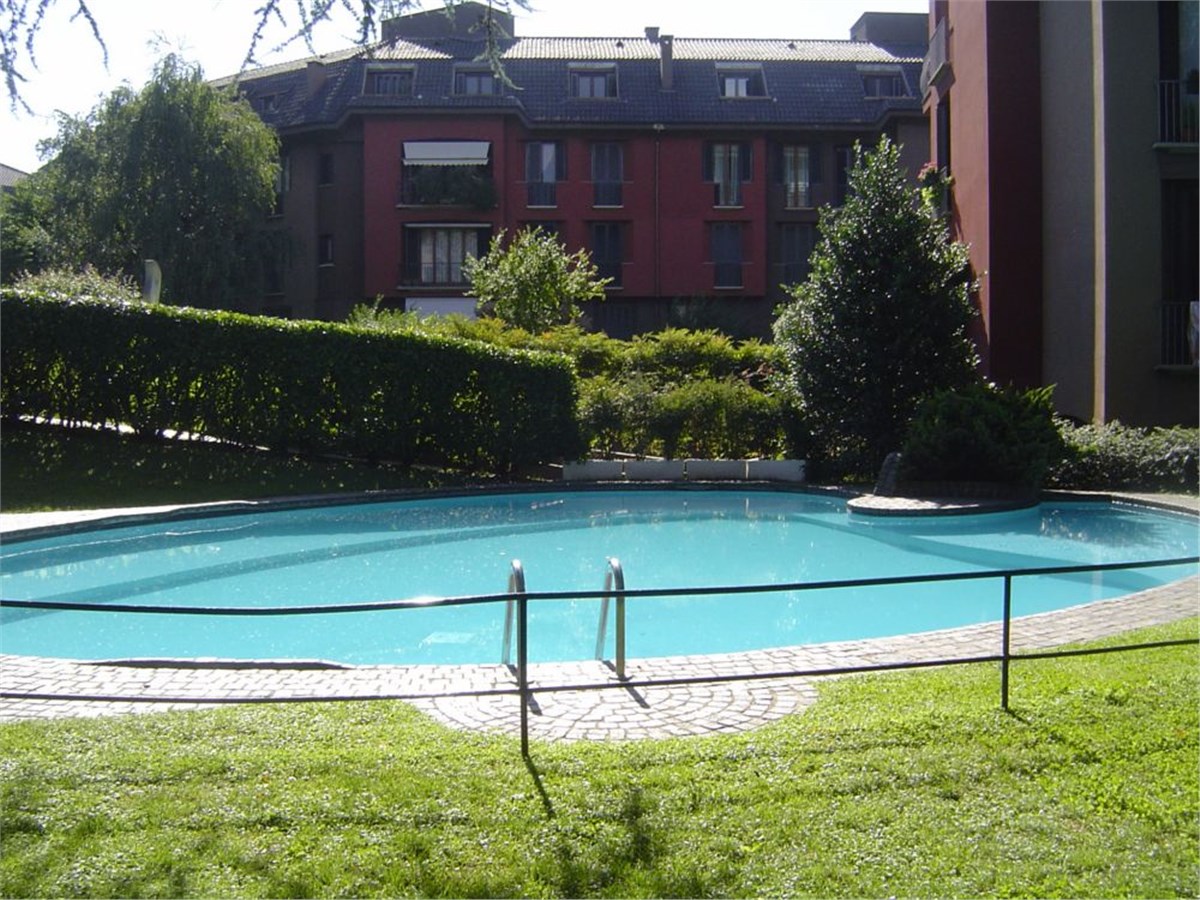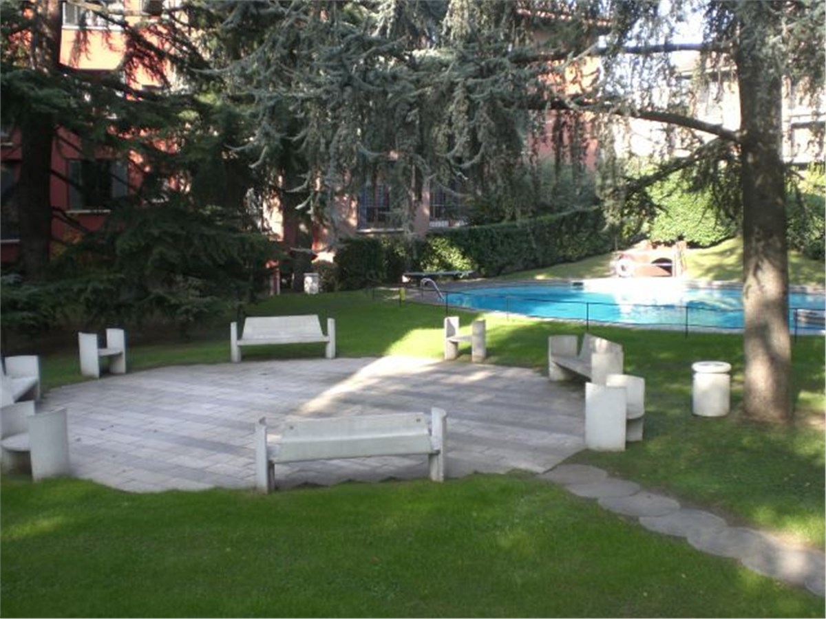 Via Carlo Osma - San Siro, red subway line, Lampugnano exit. This quiet attractive air conditioned apartment is on the 1st floor overlooking a lovely garden with a swimming pool. The building complex is modern, well landscaped with 24hours porter service. The 140sqmt floor space comprises a living-room, 3 bedrooms, 2 bathrooms, an “eat-in” kitchen with balcony and garage. Furniture: cupboards and furnished kitchen. Hardwood floors throughout. The monthly cost which includes rent of apartment and garage, condominium expenses, central heating and hot water is € 2.025,00. Energy Certificate E 122,78 kWh/m2a. Available.