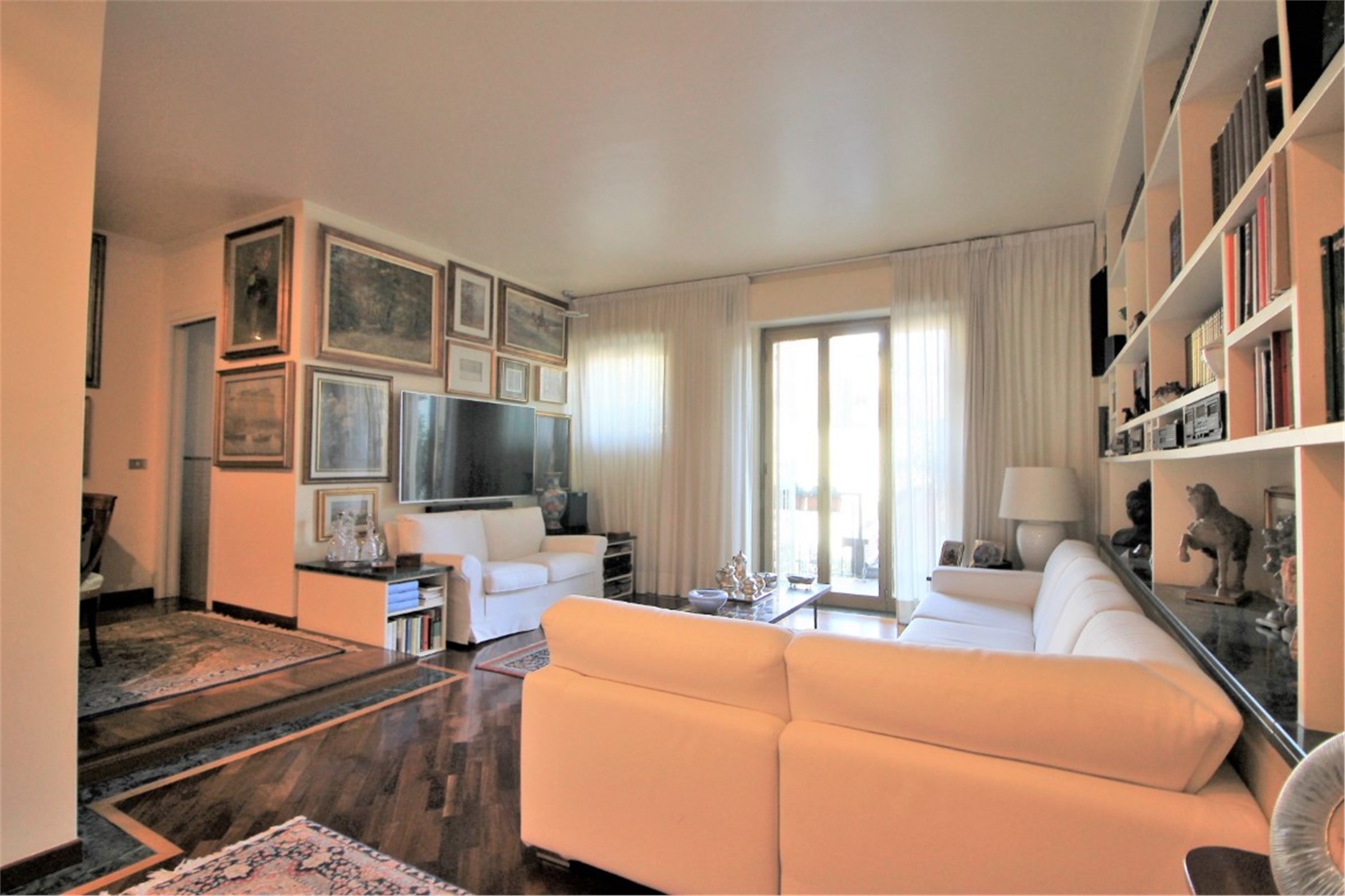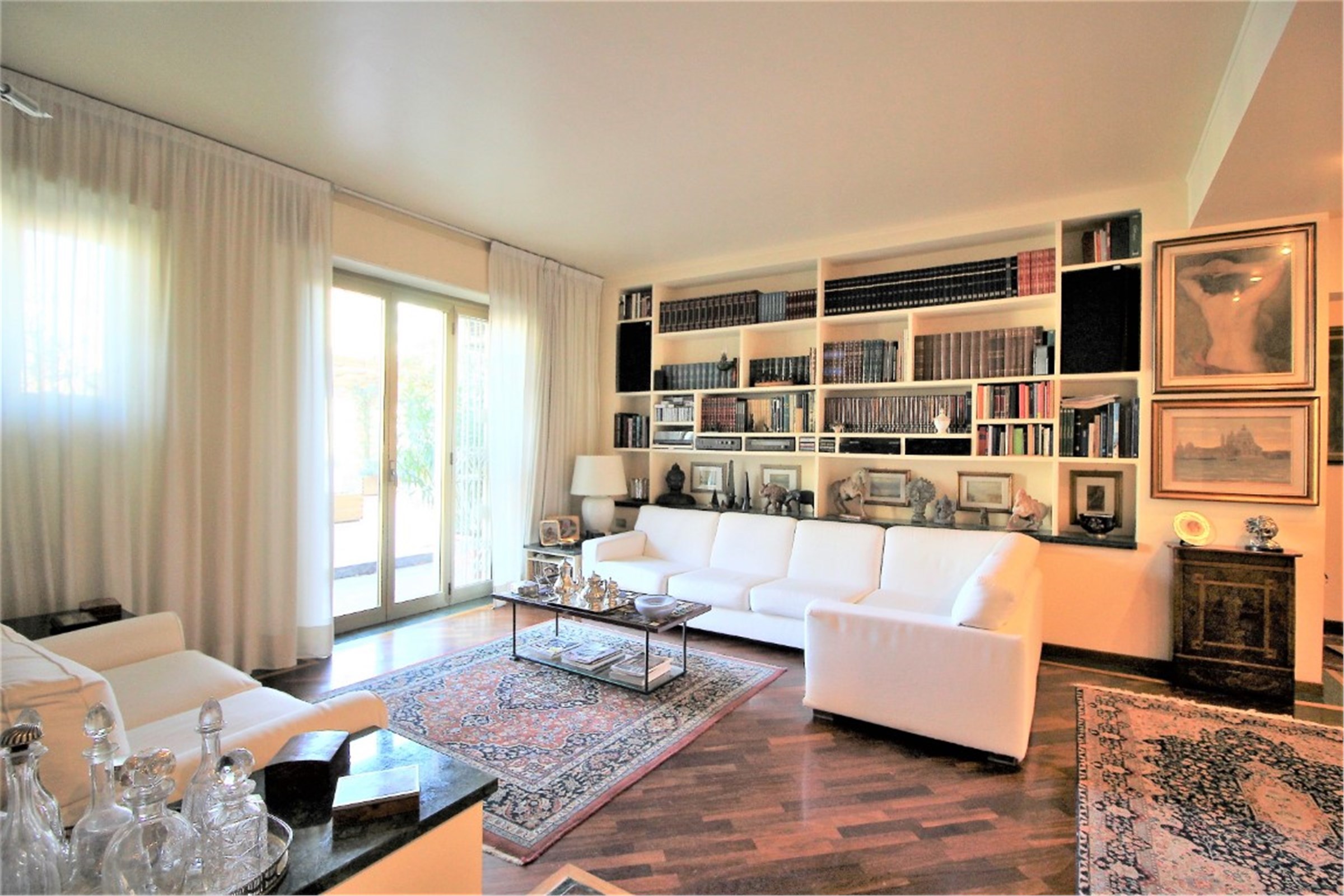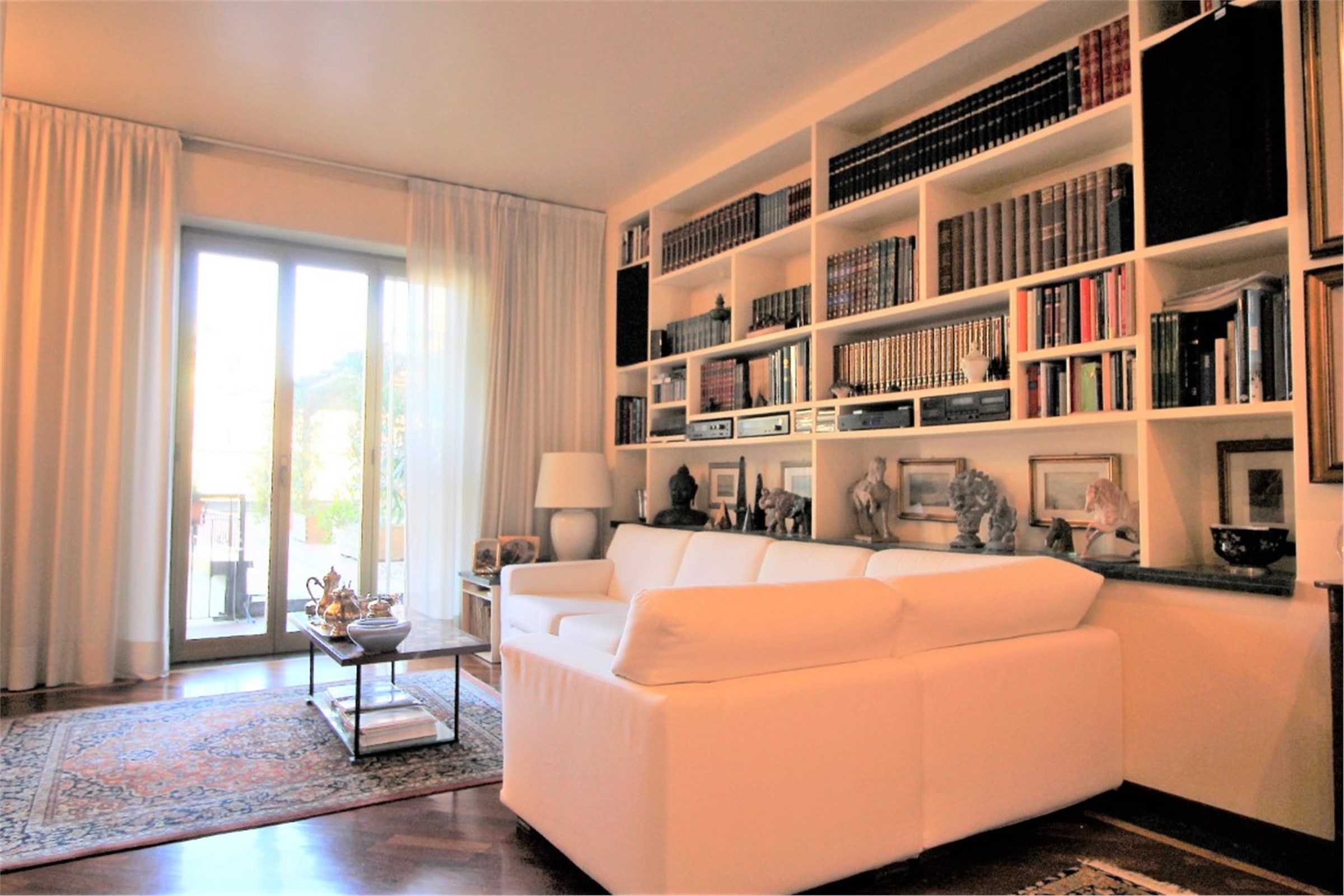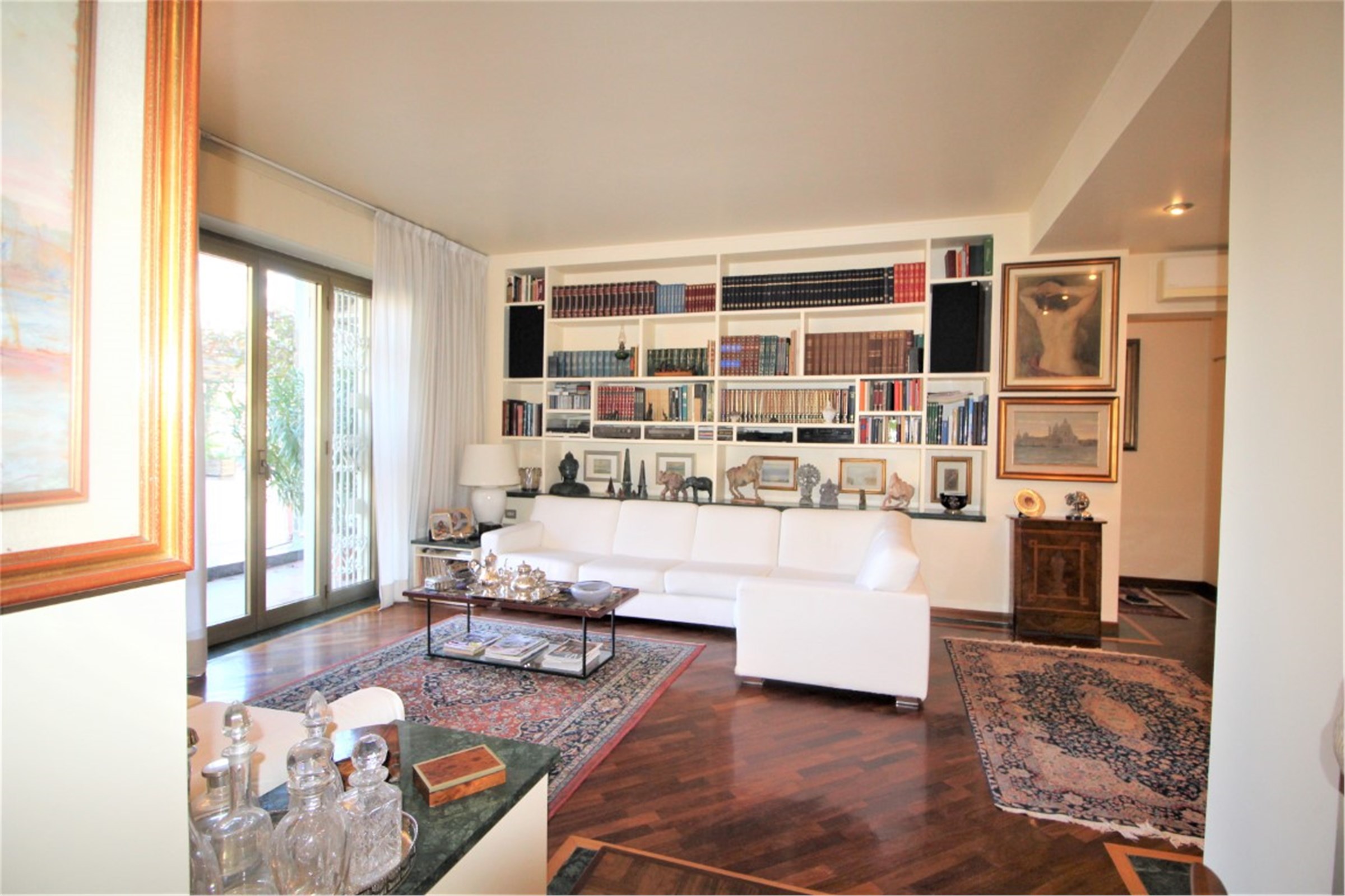 Città Studi - Via Caruso In a residential area away from traffic, very convenient for its proximity to all the necessary services and the most important academic institutes throughout the city (Polytechnic, State University), the best Milanese clinics and the most renowned medical research institutes, we offer for sale a beautiful, very bright apartment of about 115 square meters enriched by the presence of a wonderful terrace of 300 square meters. The interior space consists of a cozy living room with dining corner which leads to the beautiful terrace, a kitchen, two large bedrooms and two bathrooms with a window. Precious closets have been created in the niches. The terrace, which extends along the entire perimeter of the house, mainly extends in front of the living area where a private area equipped with a large pergola has been created. The apartment is in perfect condition. It was renovated with great care about ten years ago with high quality finishes: the Iroko essence was chosen for the parquet flooring with a green Guatemala marble decoration, for the bathrooms the best marbles were chosen (Travertine, Carrara marble) enriched with decorations with inlays of precious materials. Aluminum windows with double glazing, armored door, air conditioning throughout the house. Cellar of relevance. Concierge service around the clock. Availability of a large double garage for a separate price of € 68,000 Monthly charges: € 3000 / year including central heating with ceiling panels. Available September 2021 Energy certificate: in preparation Request € 639,000
