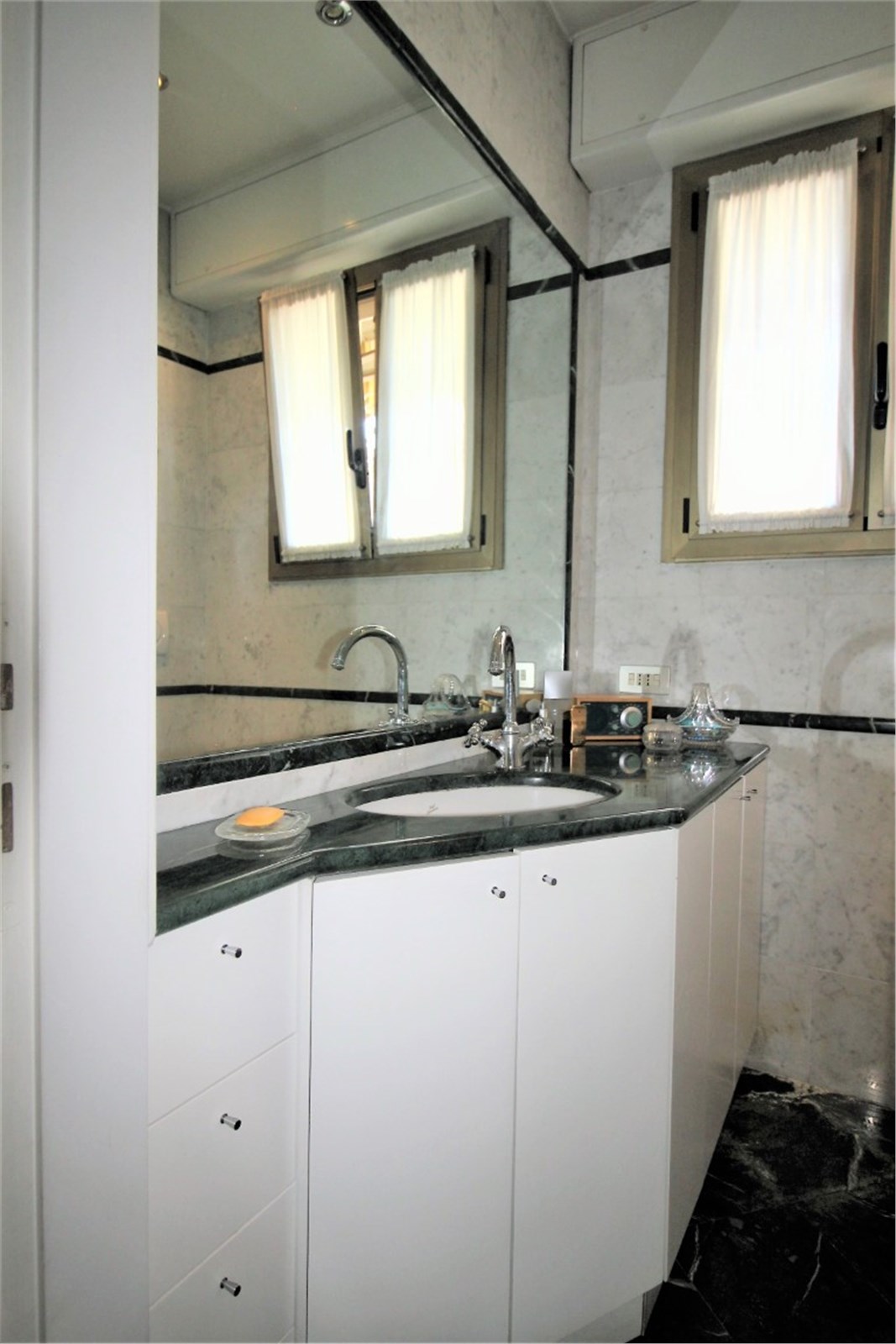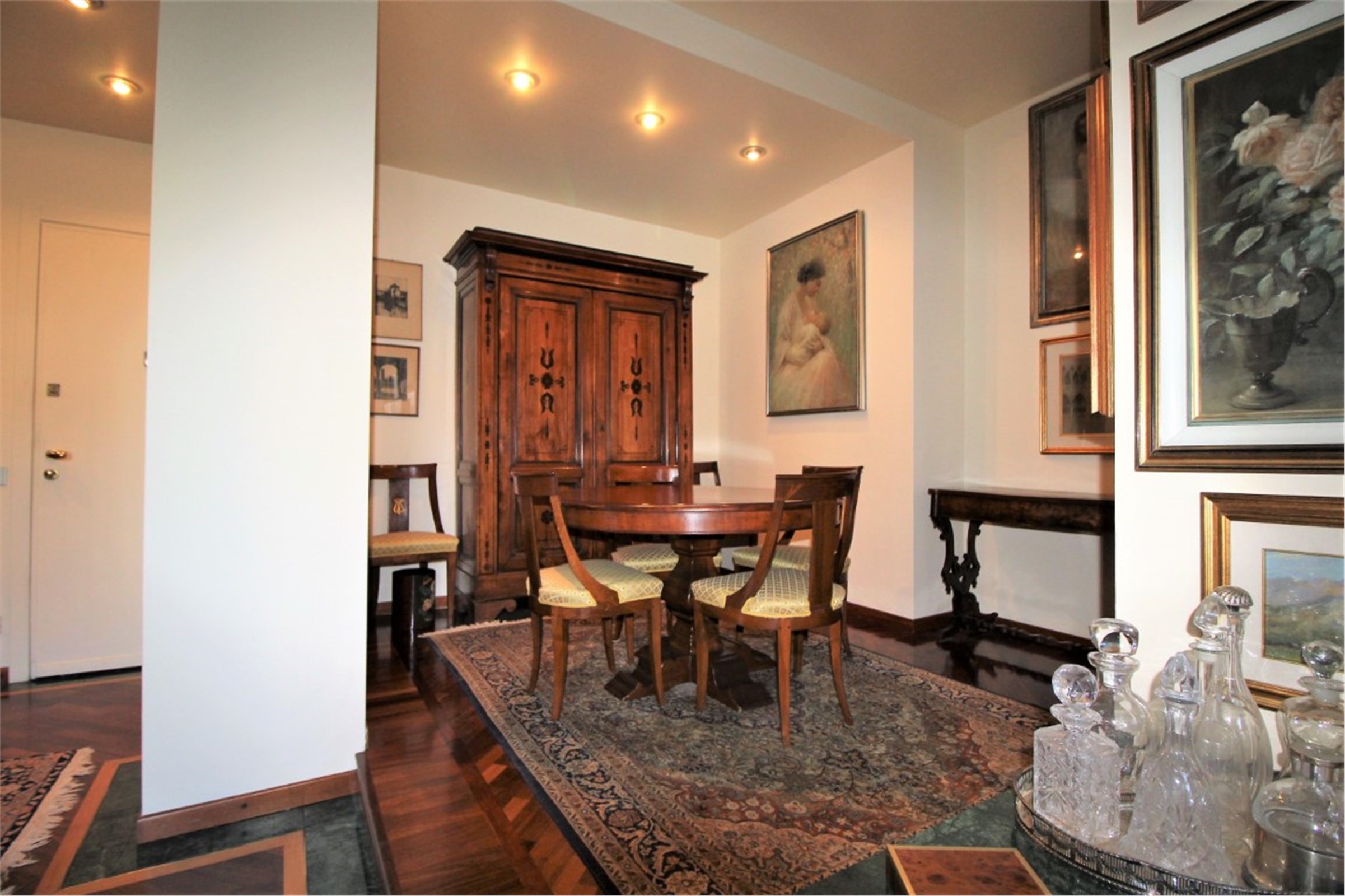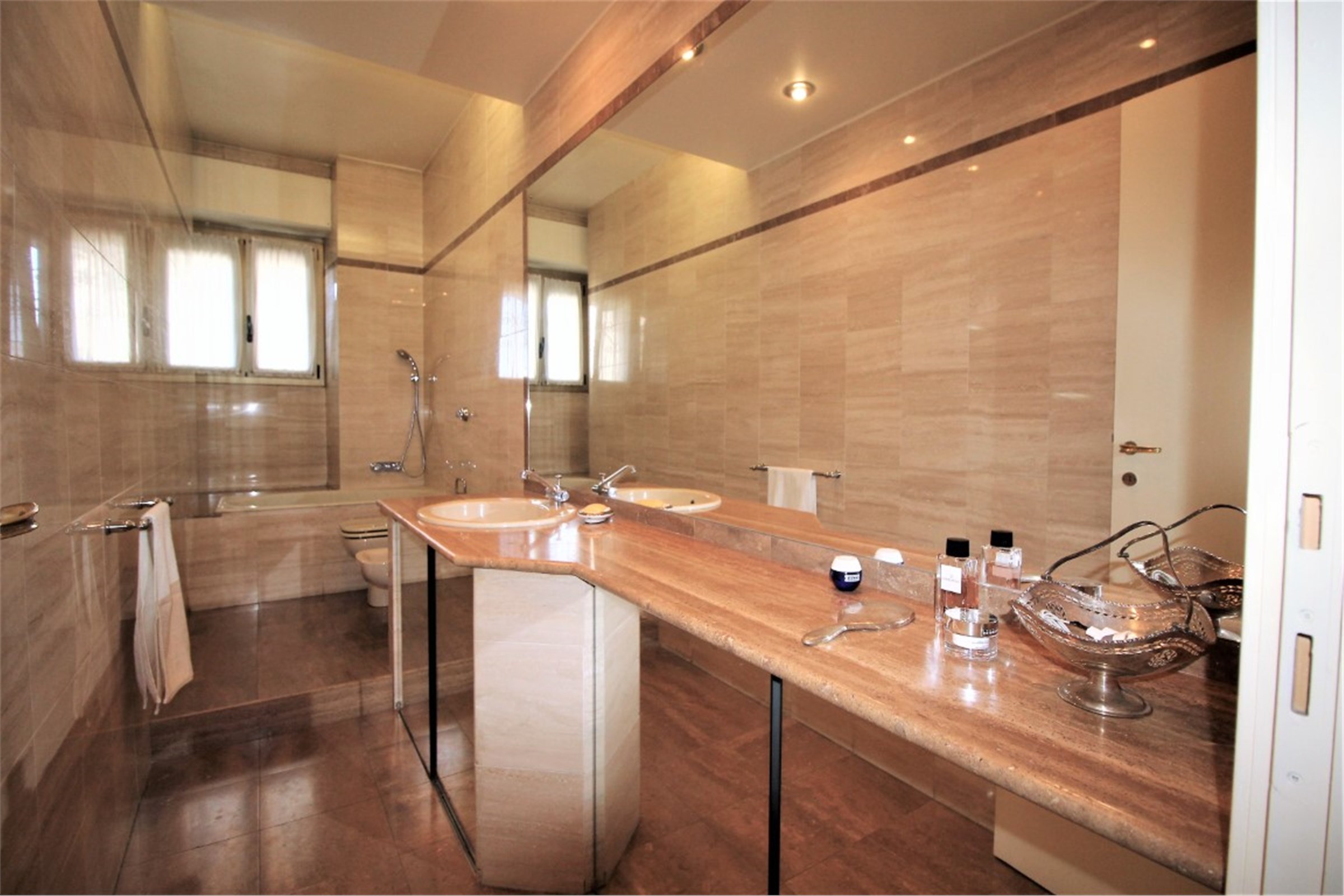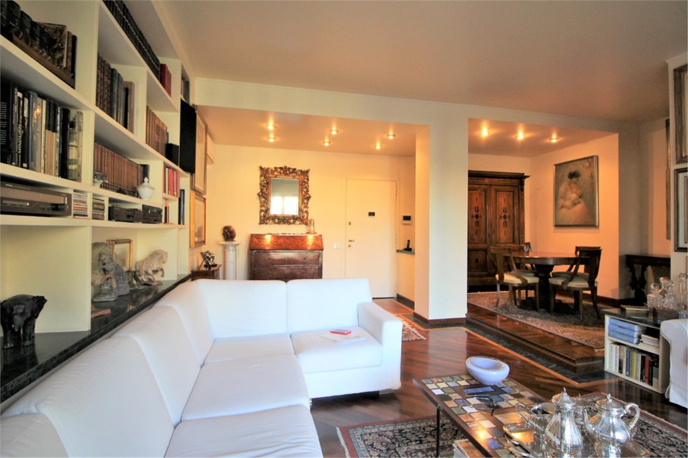 Città Studi - Via Caruso In a residential area away from traffic, very convenient for its proximity to all the necessary services and the most important academic institutes throughout the city (Polytechnic, State University), the best Milanese clinics and the most renowned medical research institutes, we offer for sale a beautiful, very bright apartment of about 115 square meters enriched by the presence of a wonderful terrace of 300 square meters. The interior space consists of a cozy living room with dining corner which leads to the beautiful terrace, a kitchen, two large bedrooms and two bathrooms with a window. Precious closets have been created in the niches. The terrace, which extends along the entire perimeter of the house, mainly extends in front of the living area where a private area equipped with a large pergola has been created. The apartment is in perfect condition. It was renovated with great care about ten years ago with high quality finishes: the Iroko essence was chosen for the parquet flooring with a green Guatemala marble decoration, for the bathrooms the best marbles were chosen (Travertine, Carrara marble) enriched with decorations with inlays of precious materials. Aluminum windows with double glazing, armored door, air conditioning throughout the house. Cellar of relevance. Concierge service around the clock. Availability of a large double garage for a separate price of € 68,000 Monthly charges: € 3000 / year including central heating with ceiling panels. Available September 2021 Energy certificate: in preparation Request € 639,000